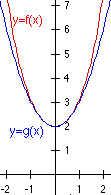 Zwischen x=-1 und x=1 stimmen f und g bereits